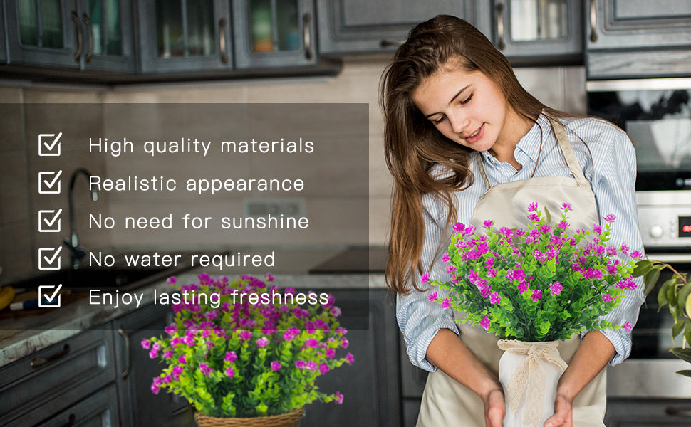 🌸 【Wonderful Decorations】- Upscale look Artificial flowers are perfect for any landscaping project or decor style. Fake faux greenery plants are perfect home, hotels, terrace, office, guesthouses, garden, Christmas or other indoor outside place decoration.